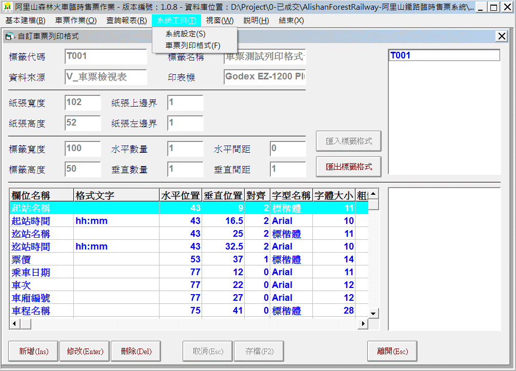 略過巡覽連結首頁 > 產品銷售 > 商用客戶 > 專業用/工業用 > 系統開發 > 阿里山森林鐵路臨時售票系統